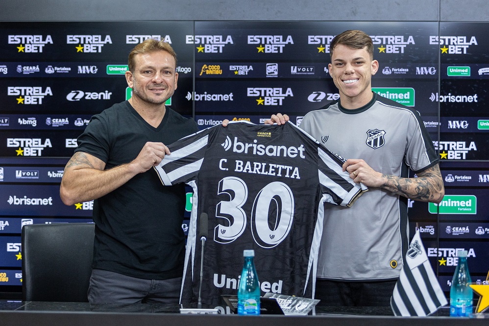Na tarde desta terça-feira (08), o Ceará apresentou oficialmente mais um reforço contratado para a atual temporada. Acompanhado do Diretor de Futebol Albeci Júnior, o atacante Chrystian Barletta falou com os jornalistas presentes na sala de imprensa Sérgio Pinheiro.