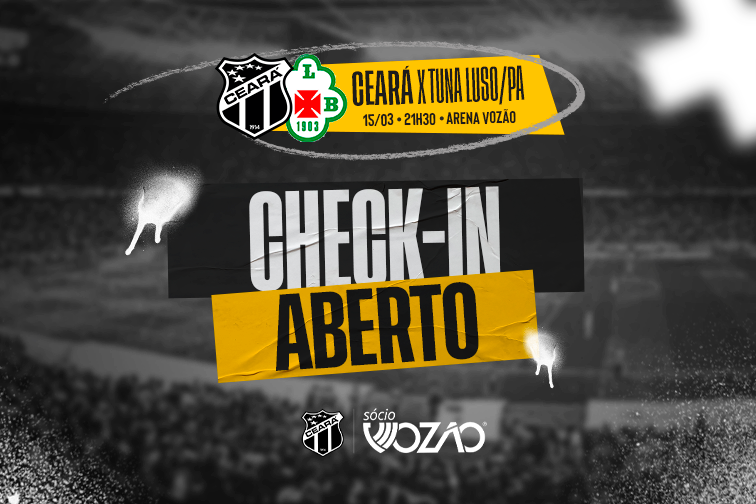 Pela segunda fase da Copa do Brasil, diante da equipe Tuna Luso, o Ceará vai entrar em campo na próxima terça-feira (15), às 21h30, na Arena Castelão, e o sócio-torcedor do Vozão já pode confirmar presença na partida através do check-in.
