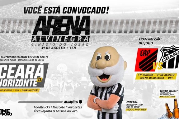 No local, além de assistir aos dois jogos, o torcedor que for ao Ginásio do Vozão irá ter acesso a diversas atrações como food-trucks, música ao vivo, área infantil e a presença de Vovozetes e, também, do mascote do clube, o Vozão.
