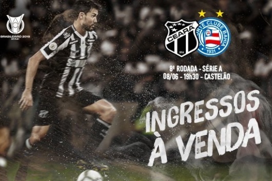 A venda de tickets para a partida Ceará x Bahia, pela oitava rodada da Série A do Campeonato Brasileiro se inicia na tarde desta terça-feira, 04/06.