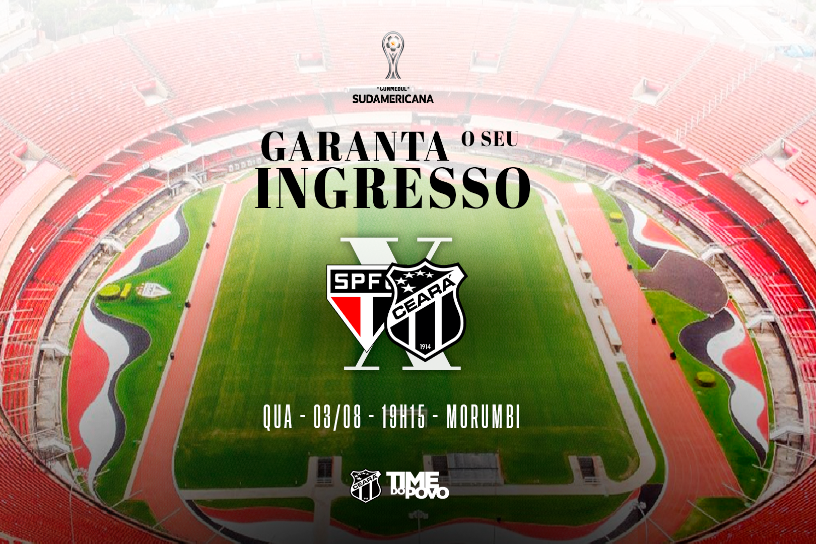 Pelas quartas de final da CONMEBOL Sudamericana, o Ceará encara a equipe do São Paulo na próxima quarta-feira (3), fora de casa, no estádio Morumbi, às 19h15. Para o duelo, o torcedor alvinegro que vai acompanhar o Mais Querido de perto, deverá realizar a compra do ingresso de forma on-line.