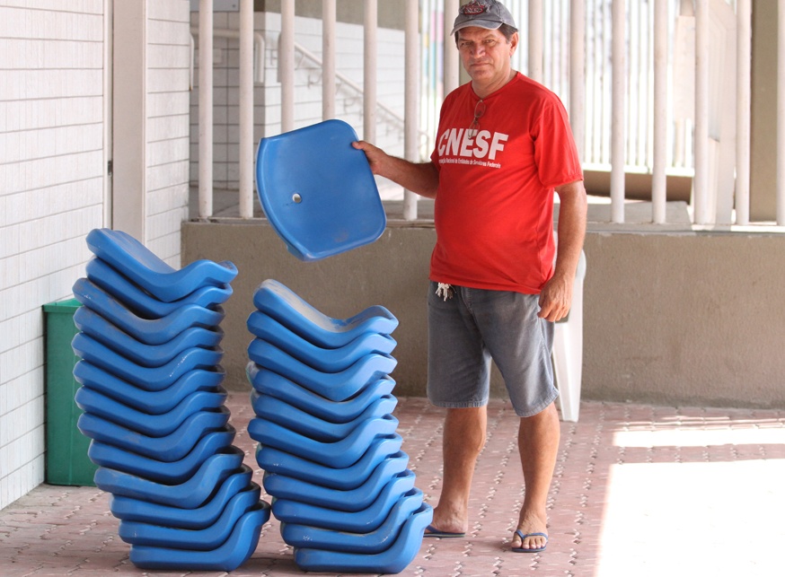 As cadeiras foram entregues ao responsável pelo Setor de Manutenção, Sr. Resende, e serão instaladas nas arquibancadas do estádio nos próximos dias. A entrega do material foi referente às cadeiras destruídas pela torcida alvinegra, durante as Finais do Campeonato Cearense 2012.