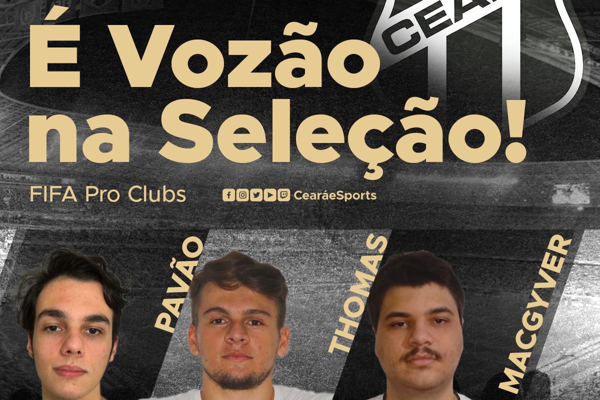 O Ceará Sporting Club é Seleção nos e-Sports. Foi anunciada a lista dos jogadores que representará o Brasil na Copa do Mundo do Fifa Pro Clubs, modalidade em que 11 e-atletas enfrentam outros 11 players em simulação de futebol virtual. O zagueiro Gabriel Pavão, o volante Thomas Becker e o atacante Macgyver, foram convocados pelo técnico Murilo Sheen para a Copa do Mundo que será iniciada no domingo, dia 26. Os jogos serão transmitidos na twitch.tv/islesports.