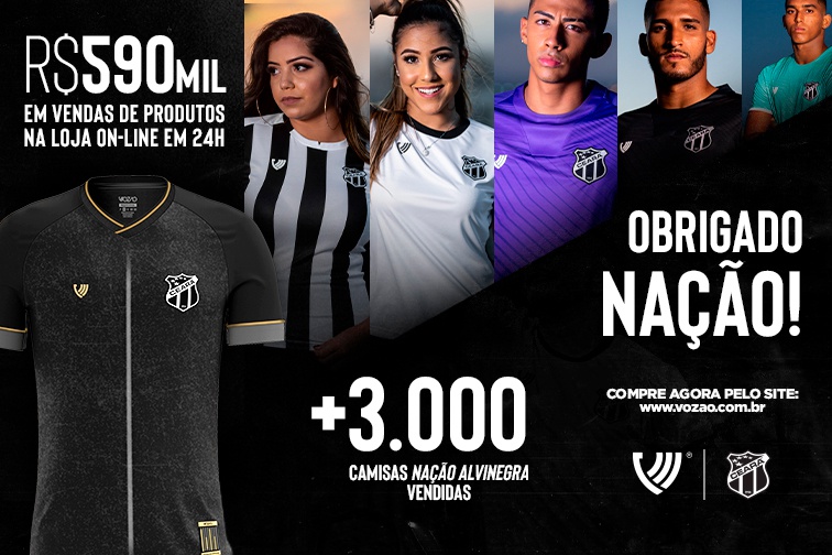 Outra novidade é a camisa Nação Alvinegra, novo uniforme do Time do Povo. A camisa que foi desenvolvida e escolhida pelo torcedor do Vozão, tem sido um sucesso massivo de vendas, já tendo atingido mais 3 mil exemplares comercializados já no primeiro dia de vendas.