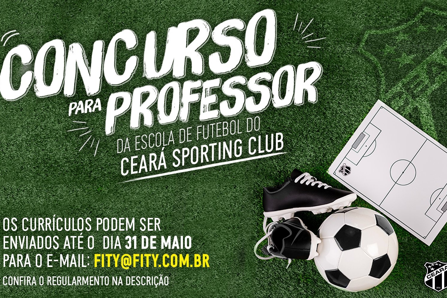 O Ceará Sporting Club, que que está modernizando e aprimorando sua escola modelo (em sua sede) e que está se preparando para lançar sua rede de escolas no mercado, decidiu seguir o mesmo caminho e promoverá em maio e junho de 2019 o concurso Fity para a seleção de um professor para a sua escola de futebol. Os detalhes do concurso são explicados a seguir.