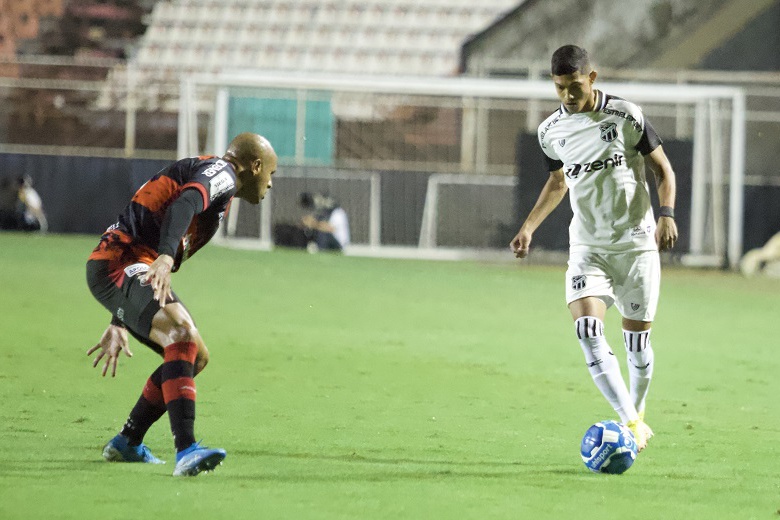 Mesmo jogando fora de casa, o Ceará começou a partida mantendo o seu padrão tático ofensivo e forçou o ataque desde os primeiros minutos. Aos 13 minutos, o lateral-esquerdo Danilo Barcellos, em cobrança de falta, levantou a bola na área, mas goleiro Deivity apareceu bem para afastar o perigo.