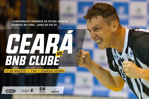 Ceará e BNB Clube fazem o segundo jogo das quartas-de-final do segundo turno estadual na tarde deste sábado, 17/08, às 17h no Ginásio Vozão. O Mais Querido venceu o primeiro jogo na última quarta-feira por 5 a 4 e pode garantir a classificação para a semifinal com um empate. Em caso de derrota no tempo normal, o Vozão também joga pelo empate na prorrogação.