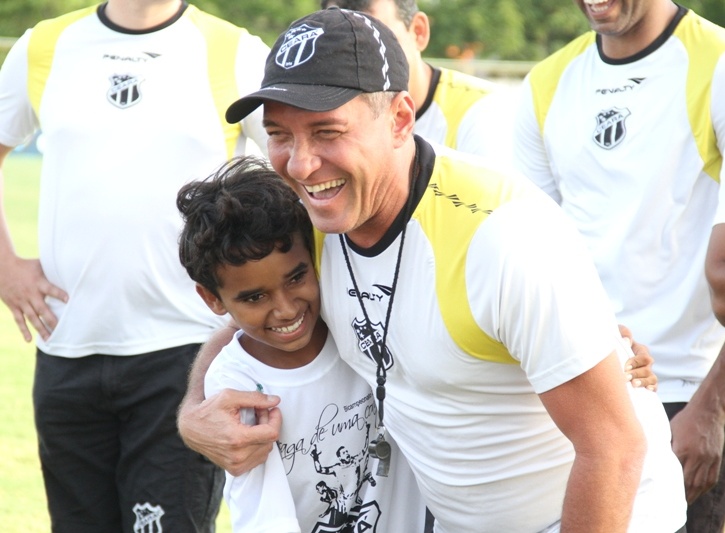 Wesley Bruno tem apenas 11 anos, mas mostrou muita desenvoltura ao ser apresentado ao elenco do Vovô. “Estou muito feliz por estar ao lado de vocês (jogadores profissionais), mas vou logo avisando... A vida de treinador não é fácil. Tem que ter muita dedicação, viu? Ainda bem que vocês tem o PC Gusmão”, afirmou o garoto, que esteve ao lado do técnico do Ceará, Paulo César Gusmão.
