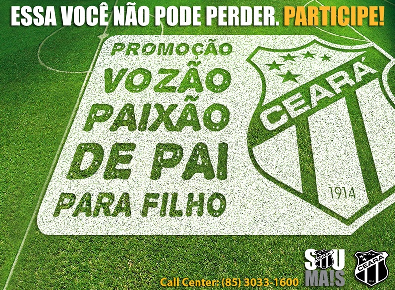 Esta promoção é destinada UNICAMENTE aos Torcedores Oficiais do clube. Para participar, basta que um dos componentes seja integrante do Programa Sou Mais Ceará (seja o pai ou o filho) e o limite para o envio do material vai se estender até dia 08/08 (próxima quarta-feira).