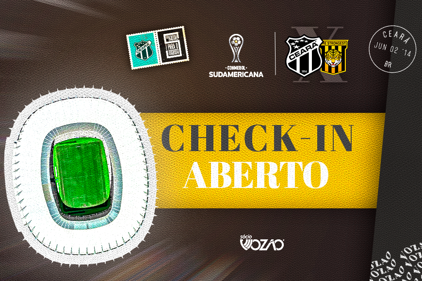 O maior jogo da história do Ceará acontecerá nesta quarta-feira (06), na Arena Castelão. Pelas oitavas de final da CONMEBOL Sudamericana, o Vozão vai encarar o The Strongest dentro de casa, ao lado da Nação Alvinegra, em busca de uma grande conquista. Para esse momento ser ainda mais especial, o torcedor alvinegro deverá estar presente e incentivar o Mais Querido. Portanto, o Sócio Vozão já liberou o check-in para a partida.