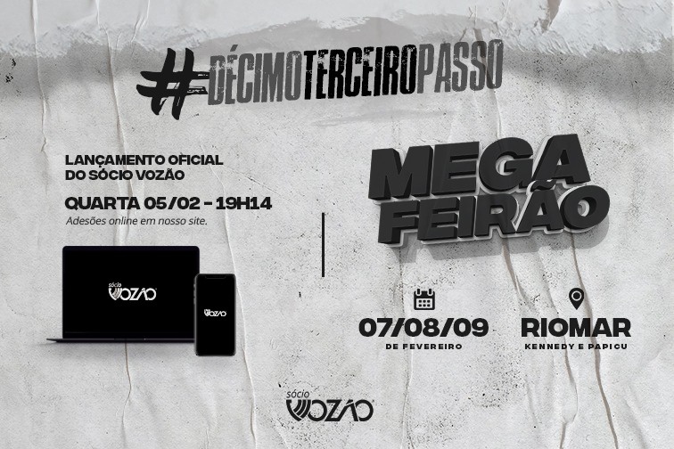 Já nos dias 07, 08 e 09/02, o Ceará irá promover um feirão para adesões presenciai nos shoppings RioMar Papicu (Piso L1) e RioMar Kennedy (Piso L2).
