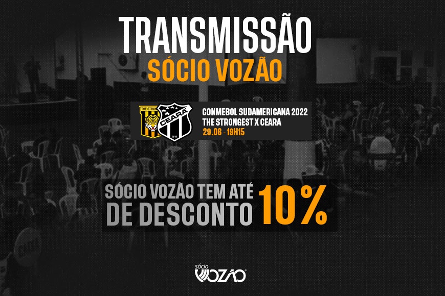 Na noite desta quarta-feira, 29, o Ceará vai encarar a equipe do The Strongest no jogo de ida das oitavas de final da CONMEBOL Sudamericana. Para acompanhar a partida juntamente da Nação Alvinegra, o Sócio Vozão preparou três pontos oficiais de transmissão especialmente para os associados do clube.