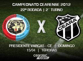 No próximo domingo, 15/04, o Ceará vai enfrentar a equipe do Tiradentes, em jogo válido pela 22ª rodada do Campeonato Cearense 2012. A partida entre as duas equipes vai acontecer no estádio Presidente Vargas (PV), às 16 horas.