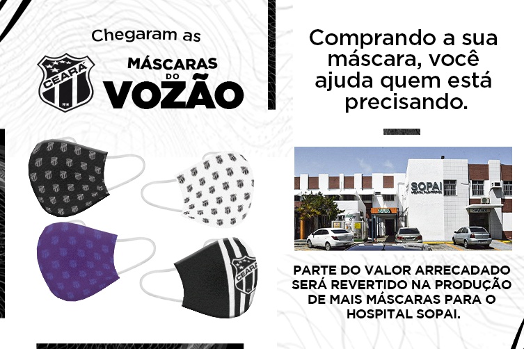 O Vozão lança mais um produto licenciado e este tem um toque ainda mais especial. Devido a pandemia de covid-19, ações de prevenção estão sendo tomadas em todo o mundo. Uma das ações mais comuns e mais eficazes na prevenção à doença é o uso de máscaras. A partir de agora, o Vozão irá produzir máscaras personalizadas e comercializá-las, tanto no atacado, quanto no varejo.