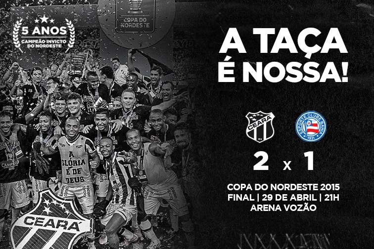 O Ceará celebra em 2020 cinco anos da conquista inédita, e de forma invicta, da Copa do Nordeste. Após mostrar a classificação na semifinal contra o Vitória/BA e o jogo de ida contra o Bahia, é hora de revivermos a emoção da grande decisão. Nesta quarta-feira, 29/04, a partir das 21h, a Vozão TV traz a grande decisão vencida pelo Mais Querido por 2 a 1.